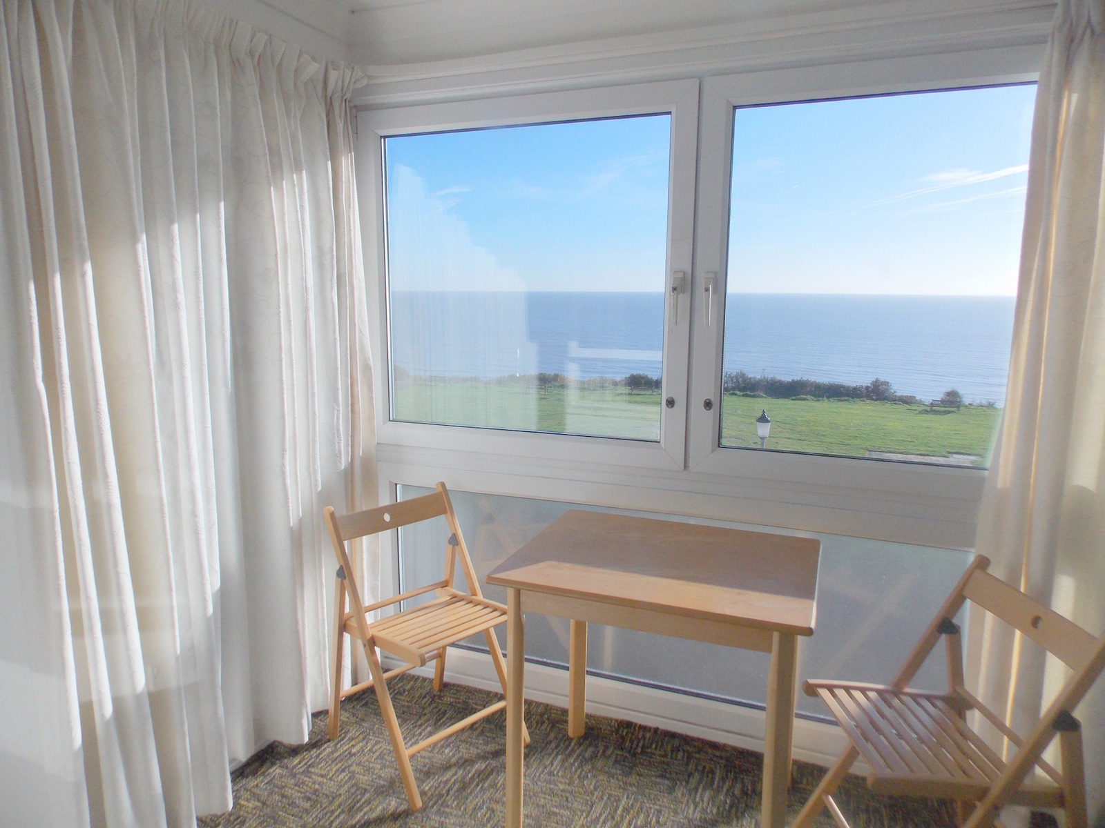 Enclosed balcony : Table and 2 chairs - beautiful views to sea. Large windows fold back for better views.