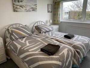 Bedroom 1 2 Single beds wardrobe, chest of drawers, bedside cabinet and lamp. Views to side with seaview.